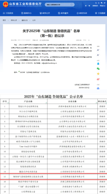 日前,山东省工业和信息化厅正式公布了2025年“山东制造 鲁链优品”第一批名单。国舜集团“钢铁烟气脱硫脱硝除尘装备及运维”成功上榜,充分展现了国舜集团的硬核技术实力与卓越服务品质,为引领行业高质量发展树立了标杆典范。